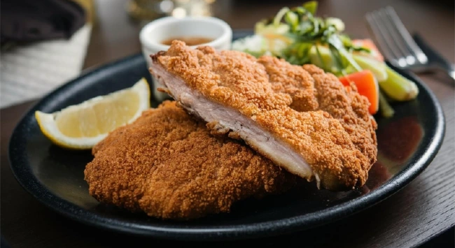 14) Schnitzel é um bife à milanesa de lombo suíno