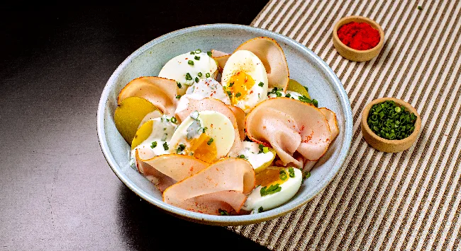 Essa receita de lombo condimentado com ovos cozidos e molho de ervas é um prato clássico e delicioso. Trata-se de uma comida alemã bastante proteica e saudável. A mistura do lombo com ovo cozido, batatas e molho deixa tudo mais delicioso. Já o iogurte é responsável pela cremosidade. O Lombo Condimentado Hans, com seu sabor marcante por causa da camada de especiarias, deixa o sabor ainda mais intenso.