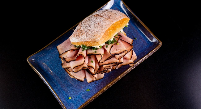 7) Geräuchert Wacholder-Kochschinken é um sanduíche