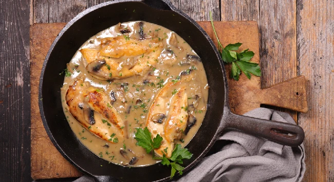 6) Filé de frango ao molho branco com cogumelos é um coringa
