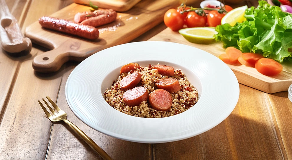 A salada de quinoa com linguiça é uma receita prática e cheia de sabor. Esta opção é perfeita para refeições rápidas ao longo de uma semana corrida. A quinoa é misturada com linguiça grelhada e cortada para criar um contraste de texturas e sabores. Para completar, os legumes são adicionados para adicionar ainda mais leveza ao prato.