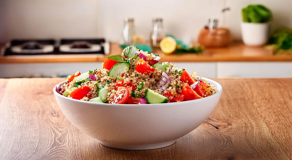 - Cozinhe a quinoa conforme as instruções da embalagem e reserve.