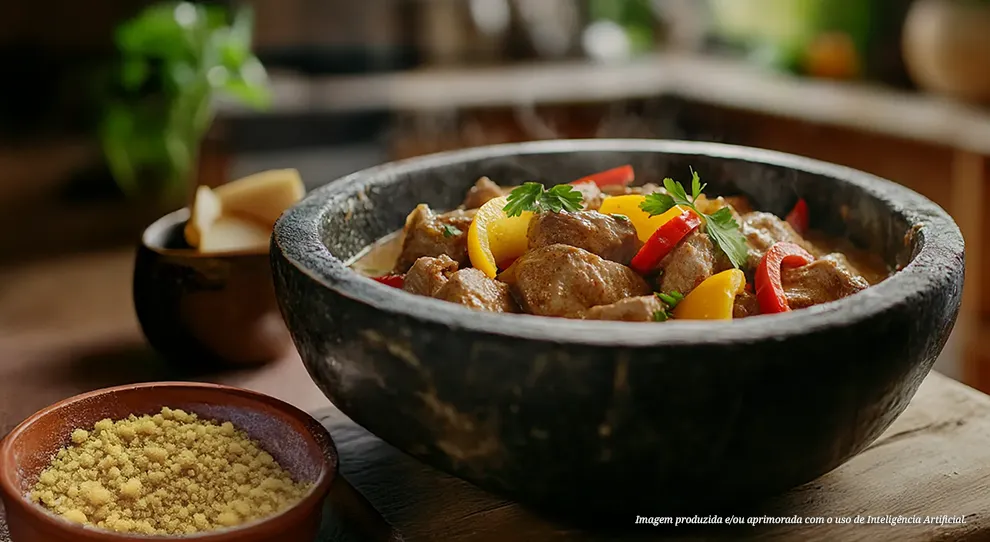 A carne de carneiro ao leite de coco com farinha de mandioca puba é um prato que une o sabor marcante do carneiro com a cremosidade do leite de coco. Essa combinação cria uma experiência gastronômica rica e reconfortante.