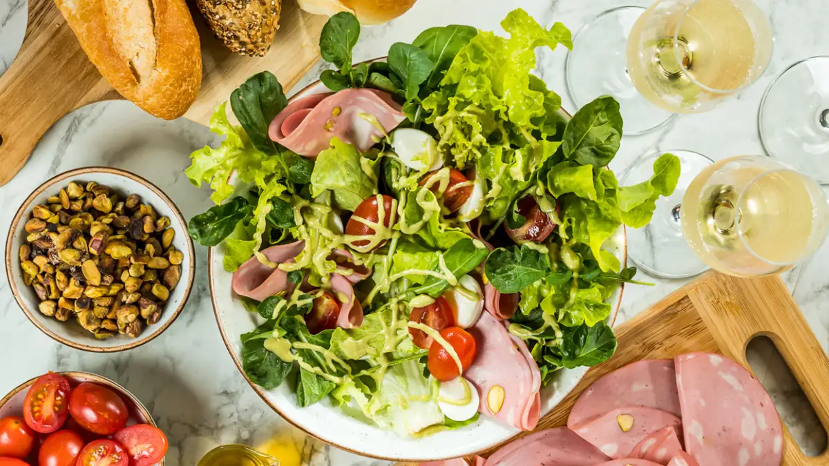 A Salada Verde com Mortadela Italiana com Pistache é uma receita sofisticada que combina folhas frescas com a intensidade da mortadela italiana. O toque especial vem do pistache, que adiciona crocância e um sabor único ao prato. Simples de preparar, essa salada é perfeita para ocasiões especiais, como o Natal, trazendo um equilíbrio entre leveza e sofisticação. Uma opção elegante para enriquecer a sua ceia e agradar a todos os paladares.