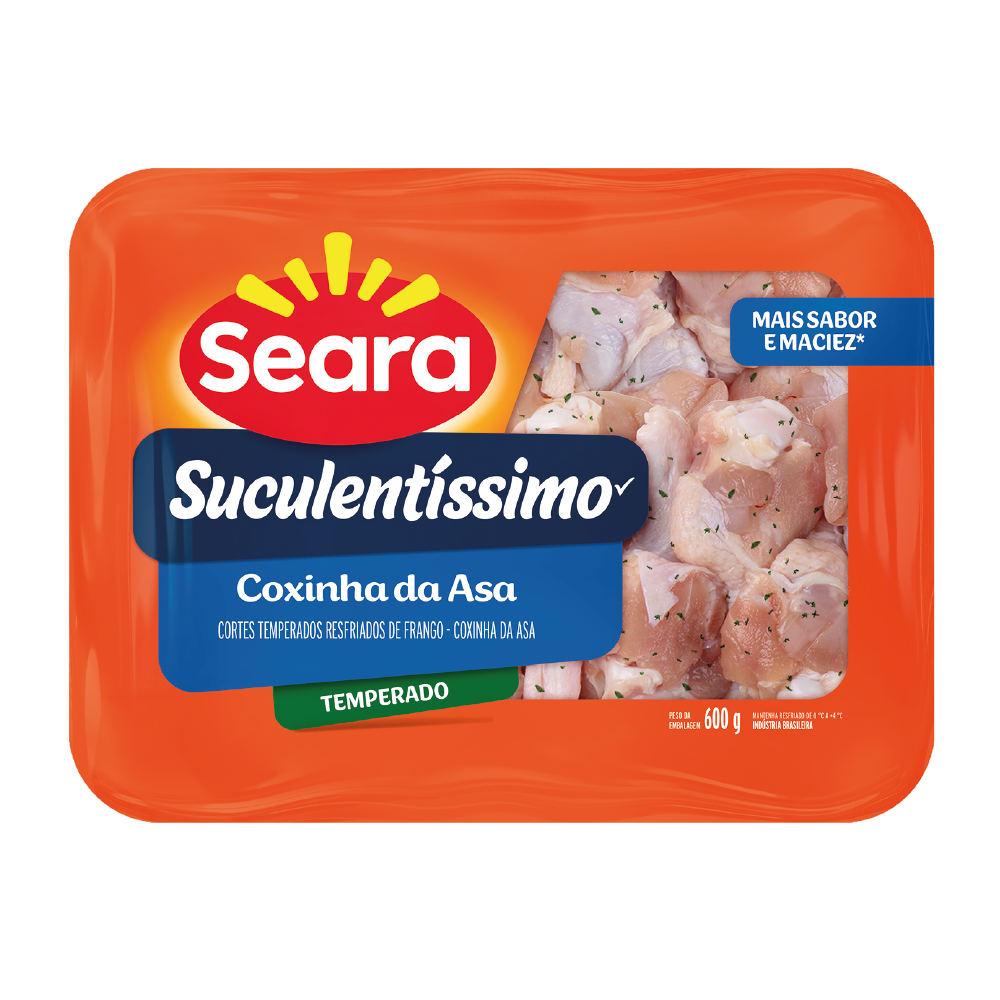 A Coxinha da asa temperada Suculentíssimo Seara é extremamente suculenta e saborosa, temperada com ervas finas, entregam a experiência do frango sem erro. Disponíveis em bandejas de 600g cada, oferecem a facilidade de porção e podem ser preparados/as de diversas formas.