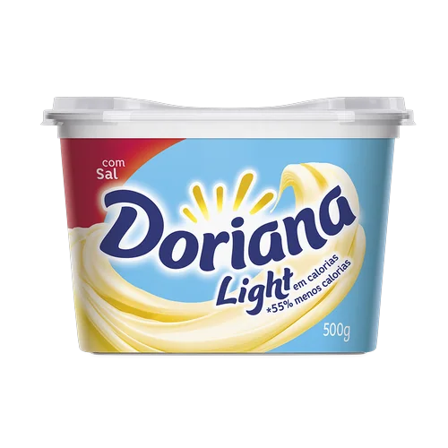 Em sua nova fórmula a Doriana Light tem 56% menos gorduras totais, além de tudo, sua cremosidade surpreendente deixa o pãozinho muito mais gostoso e ainda confere um gostinho especial aos alimentos refogados.